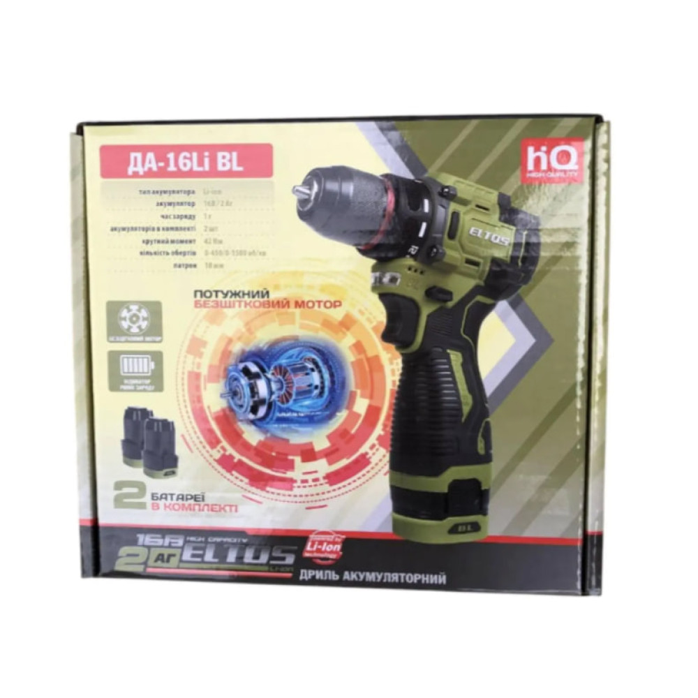 - Шуруповерт акумуляторний Eltos ДА-16 Li BL DFR;