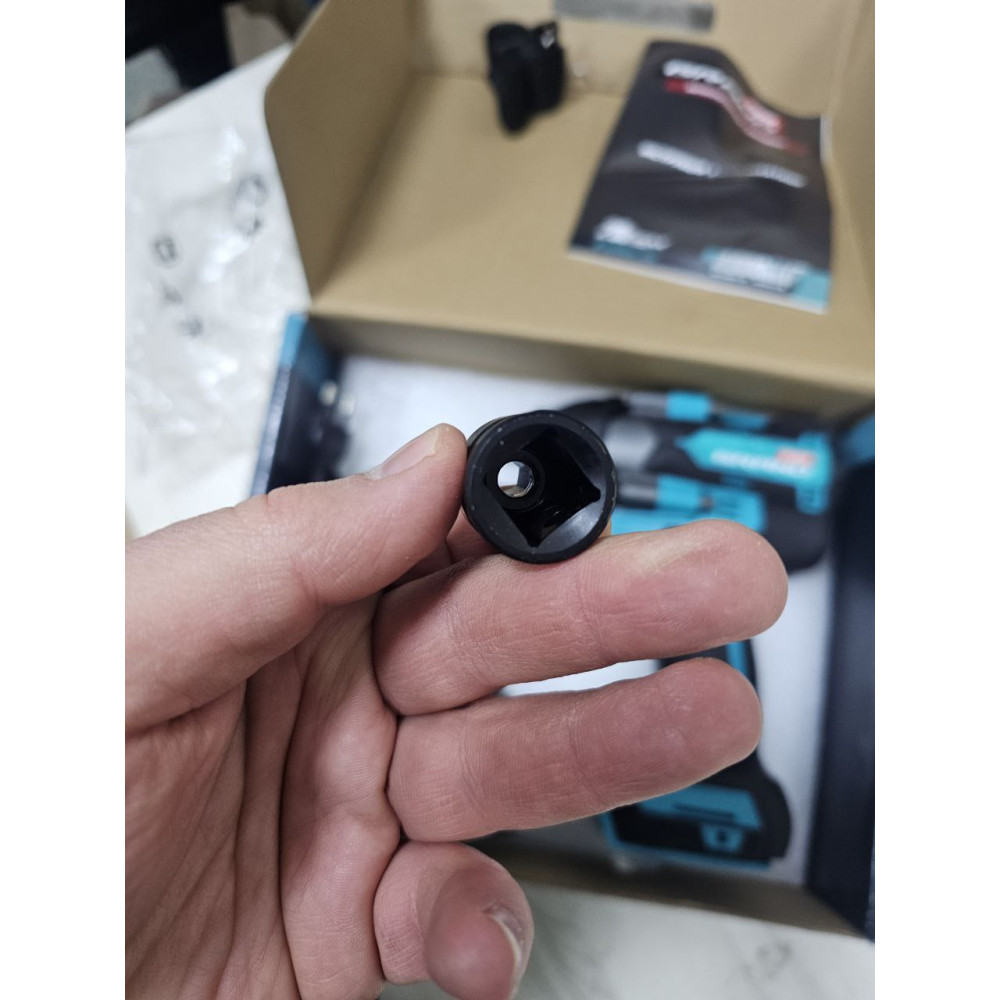 - Патрон 1/2" квадратного типу з перехідником під шестигранник 22 мм дозволяє використовувати як головки, так і біти;
