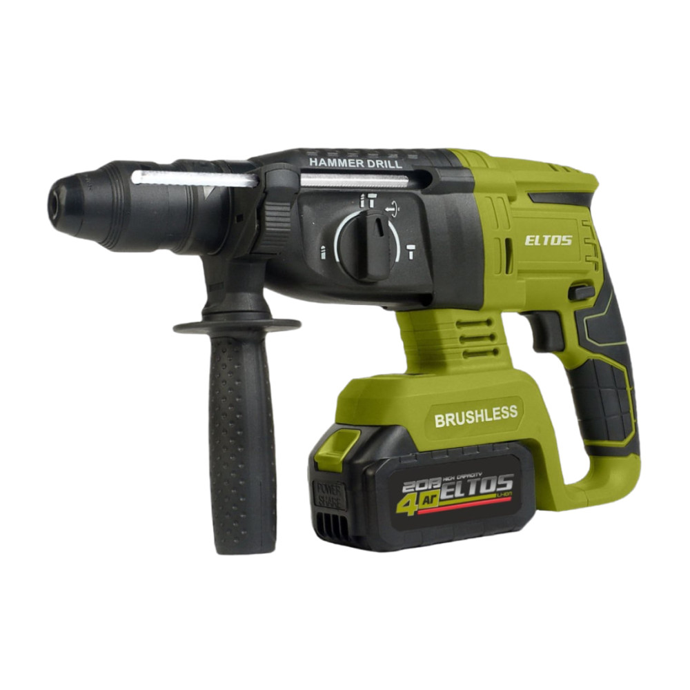 Акумуляторний перфоратор Eltos ПА-20/26DFR BL – це професійний інструмент, призначений для свердління, свердління з ударом, довбання та робіт з фіксацією зубила у бетоні, цеглі, камені та інших матеріалах. Завдяки безщітковому двигуну і силі удару 2,8 Дж, модель забезпечує стабільну продуктивність навіть під час інтенсивної експлуатації.