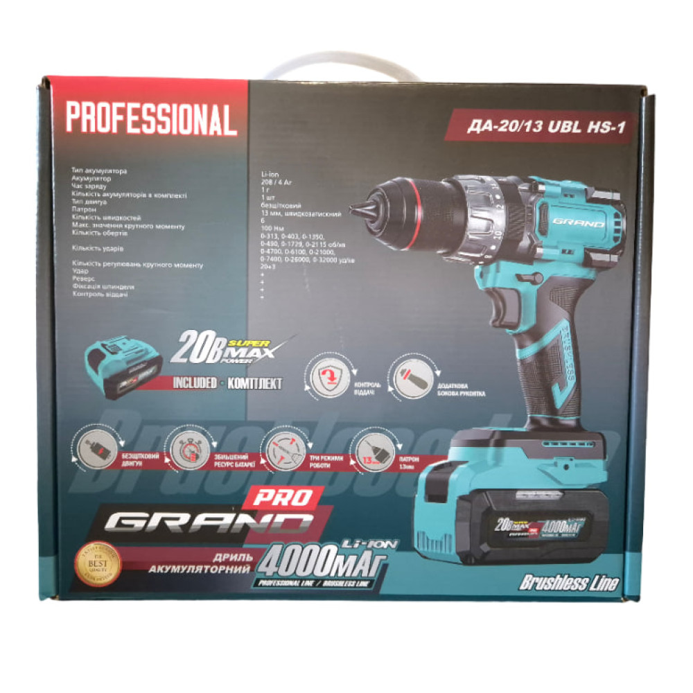 Grand ДА-20/13 UBL HS — це універсальний інструмент з підвищеною потужністю та надійністю, що забезпечує максимальний контроль, комфорт і безпеку під час роботи.