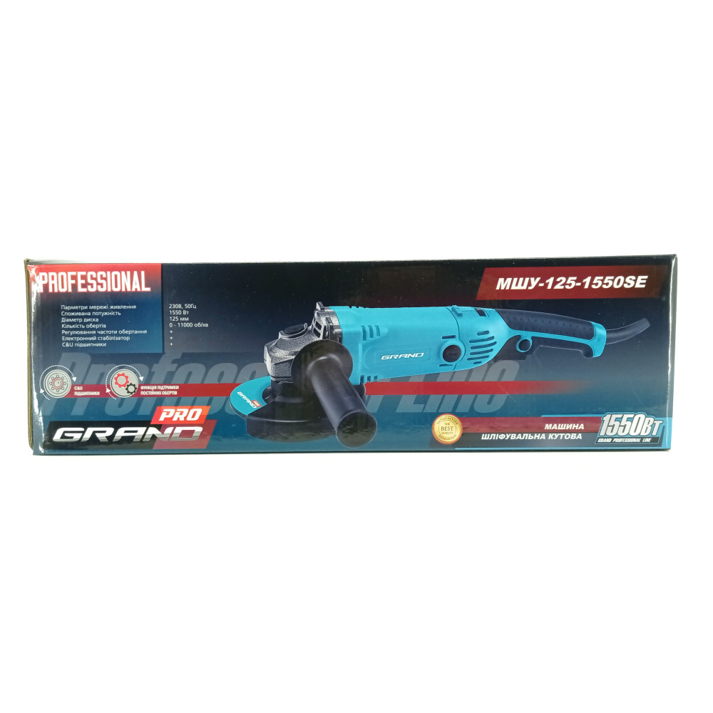 Grand МШУ 125-1550SE PRO — це потужна, функціональна і надійна болгарка для професіоналів. Вона поєднує в собі високу ефективність, гнучкість у налаштуванні та зручність у використанні, роблячи її ідеальним вибором для широкого спектра завдань.