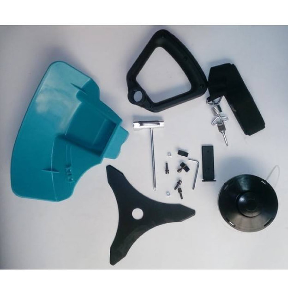 • Катушка з волосінню та трилопатевий сталевий ніж у комплекті — можливість вибору ріжучого елемента в залежності від задачі;