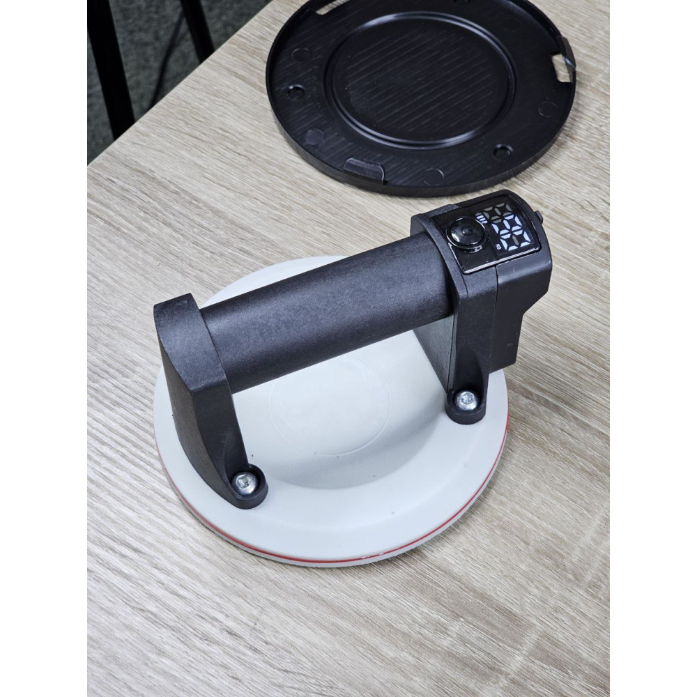 Акумуляторна вакуумна присоска Н215 – це професійний інструмент для надійного захоплення, безпечного підйому та точного позиціонування плитки, керамограніту, скла, металу, пластику, ламінату та декоративних панелей. Завдяки робочій платформі діаметром 150 мм, автоматичній системі підкачки вакууму та цифровому дисплею, ця присоска ідеально підходить для чистого, точного й безпечного монтажу гладких і слабкорельєфних матеріалів.