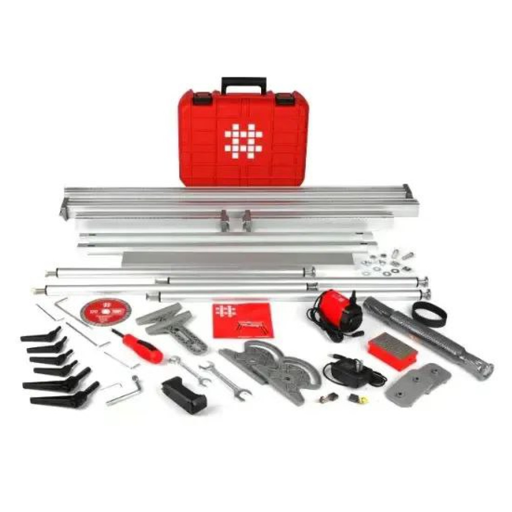Плиткоріз має складану конструкцію, яка дозволяє зібрати інструмент за 5 хвилин та легко транспортувати. Для додаткової зручності передбачені коліщатка для пересування по об'єкту. Рама виготовлена з профільованого алюмінію, а нержавіючі болти захищають від корозії.