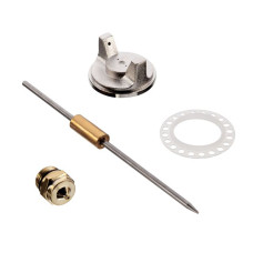 Змінний комплект складається з дюзи, повітряної головки, голки та прокладки. Залежно від в'язкості матеріалу Ви можете обрати різну по діаметру форсунку 1,3; 1,5; 1,8; 2,0; 2,2; 2,5 мм. Цей набір також може використовуватися як заміна зношених детале..