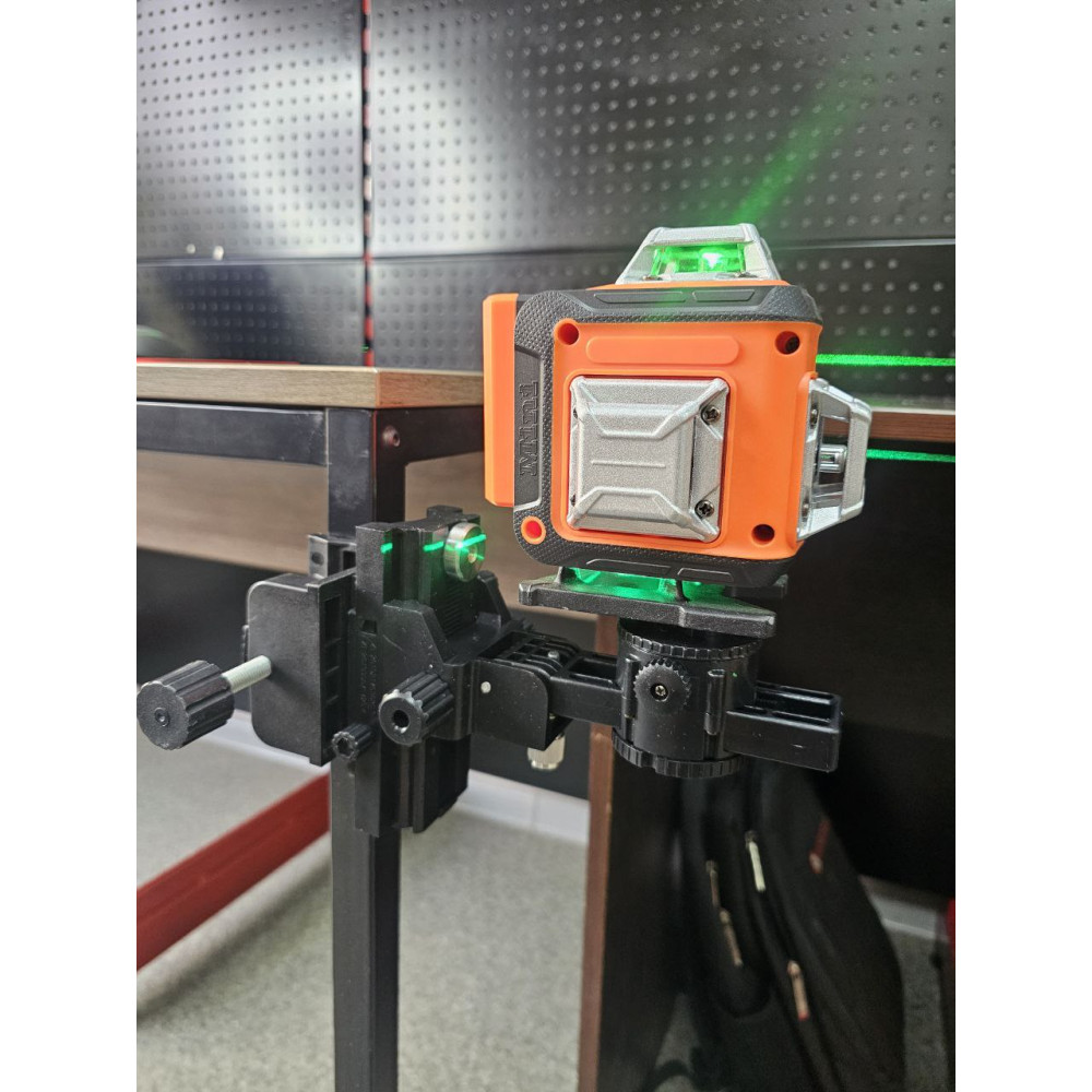 - Поворот на 360°: Можливість обертання лазера навколо своєї осі дозволяє зручно налаштовувати напрямок променя для будь-яких видів робіт.