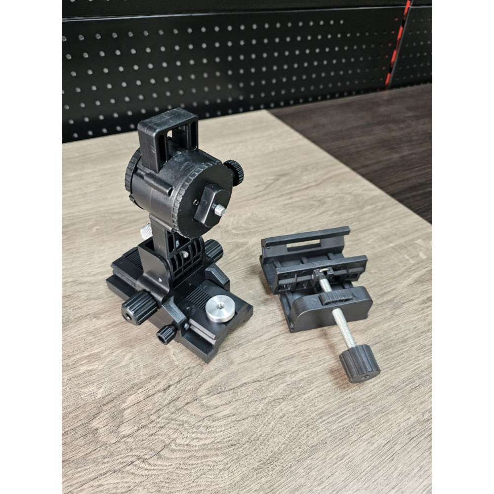 - Сумісність із різними кріпленнями: Кронштейн підтримує 2 типи різьби: 1/4" та 5/8", що робить його універсальним для більшості лазерних рівнів та штативів.
