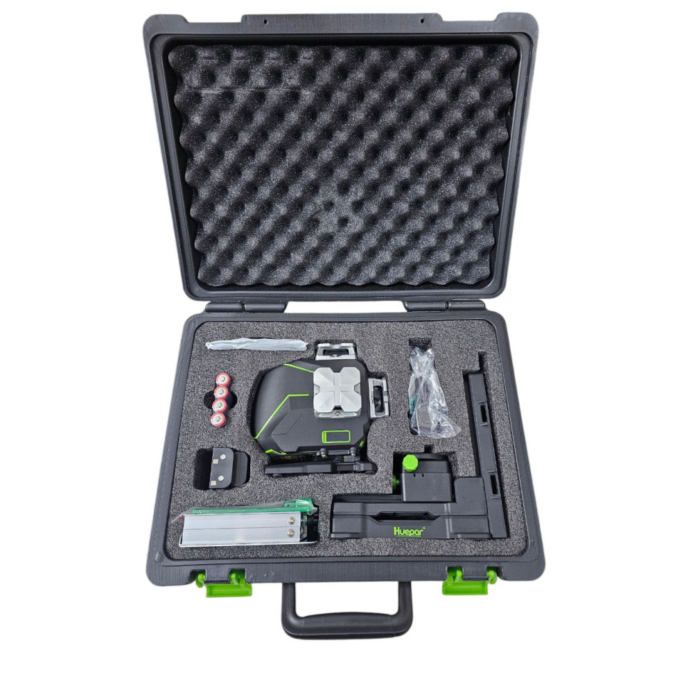Лазерний рівень Huepar S04CG — це ідеальний вибір для професіоналів та аматорів, які цінують точність, надійність та універсальність. Цей високоякісний 4D лазерний нівелір забезпечує максимальний комфорт при роботі завдяки своїм чотирьом лазерним діодам, які формують чотири площини 360°, включаючи дві вертикальні та дві горизонтальні лінії. Зелений колір ліній забезпечує високу видимість навіть при середньому освітленні, що робить його ідеальним інструментом для різноманітних робіт. Також у комплекті йде штатив для зручного встановлення лазерного рівня, що забезпечує стабільність, точність вимірювань та комфортну роботу на різних висотах.