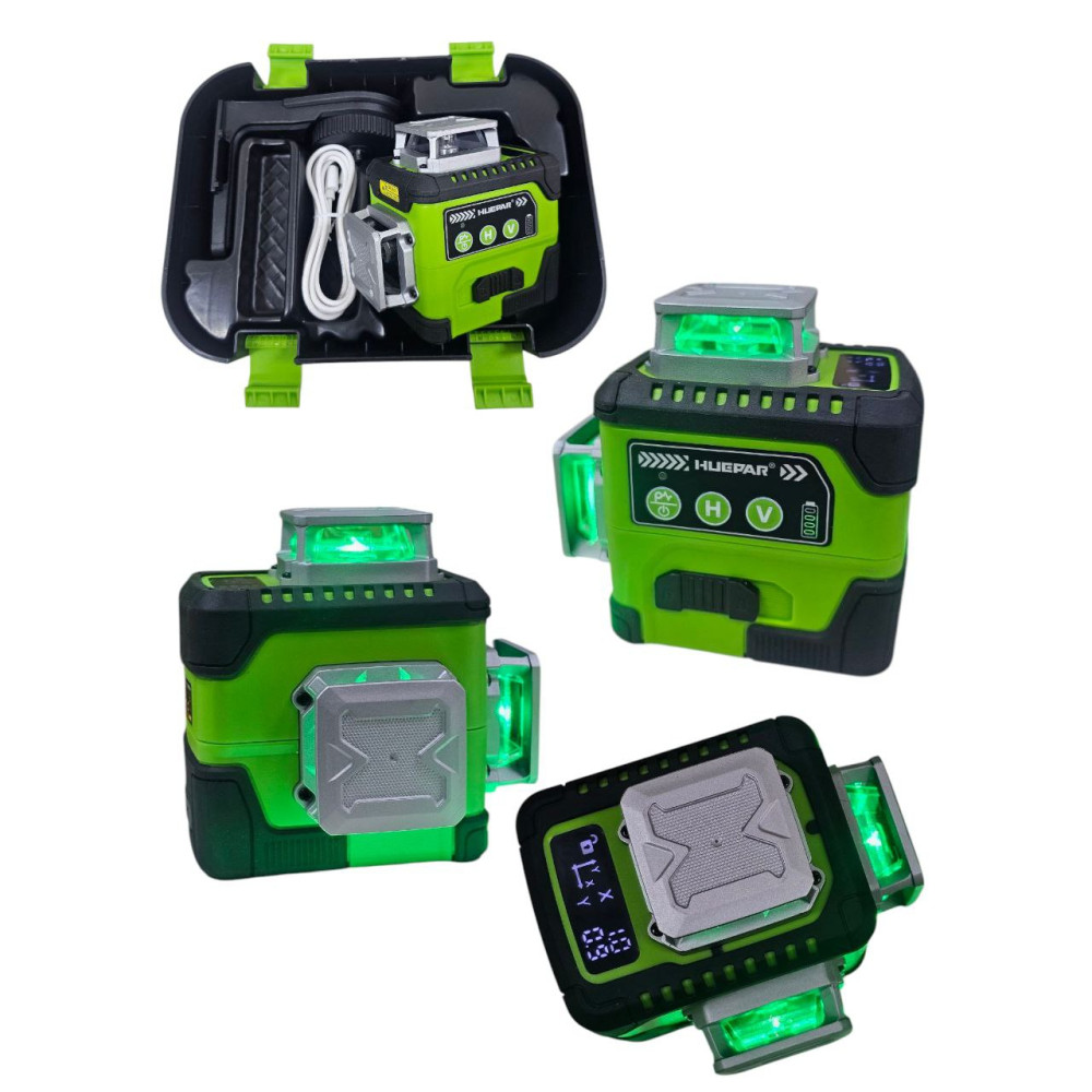 Huepar Y03CG — це сучасний професійний 3D лазерний рівень із яскравими зеленими лініями, точним самовирівнюванням та зручним LCD-дисплеєм для контролю кутів. Ідеальний інструмент для майстрів, які виконують точні будівельні, монтажні та оздоблювальні роботи.
