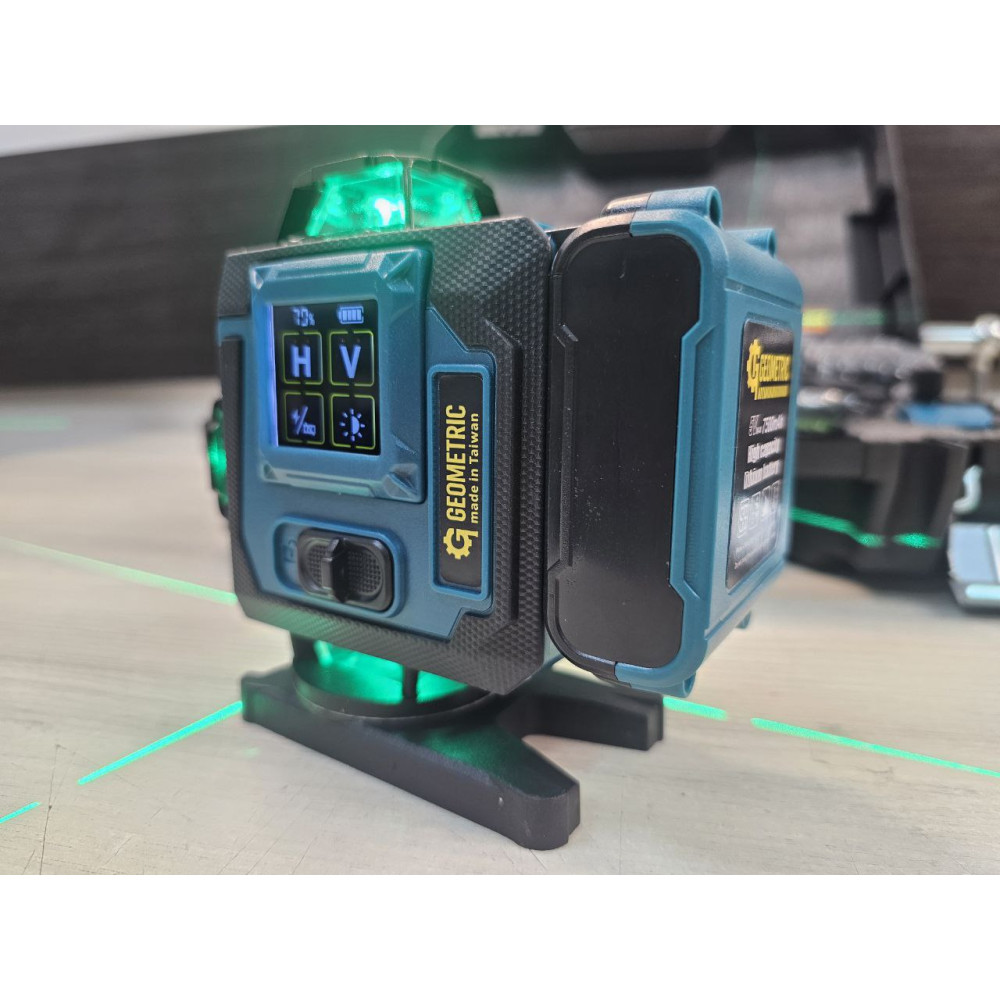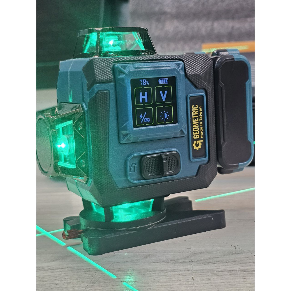 З Geometric HC-7500 4-D Blue ви отримуєте надійний, технологічний та максимально укомплектований лазерний рівень, який стане професійним інструментом для будь-яких будівельних, ремонтних та дизайнерських задач. Тонкі яскраві лінії, сучасні акумулятори, великий дисплей та якісний запорний механізм роблять його одним із найкращих рішень у своєму класі.