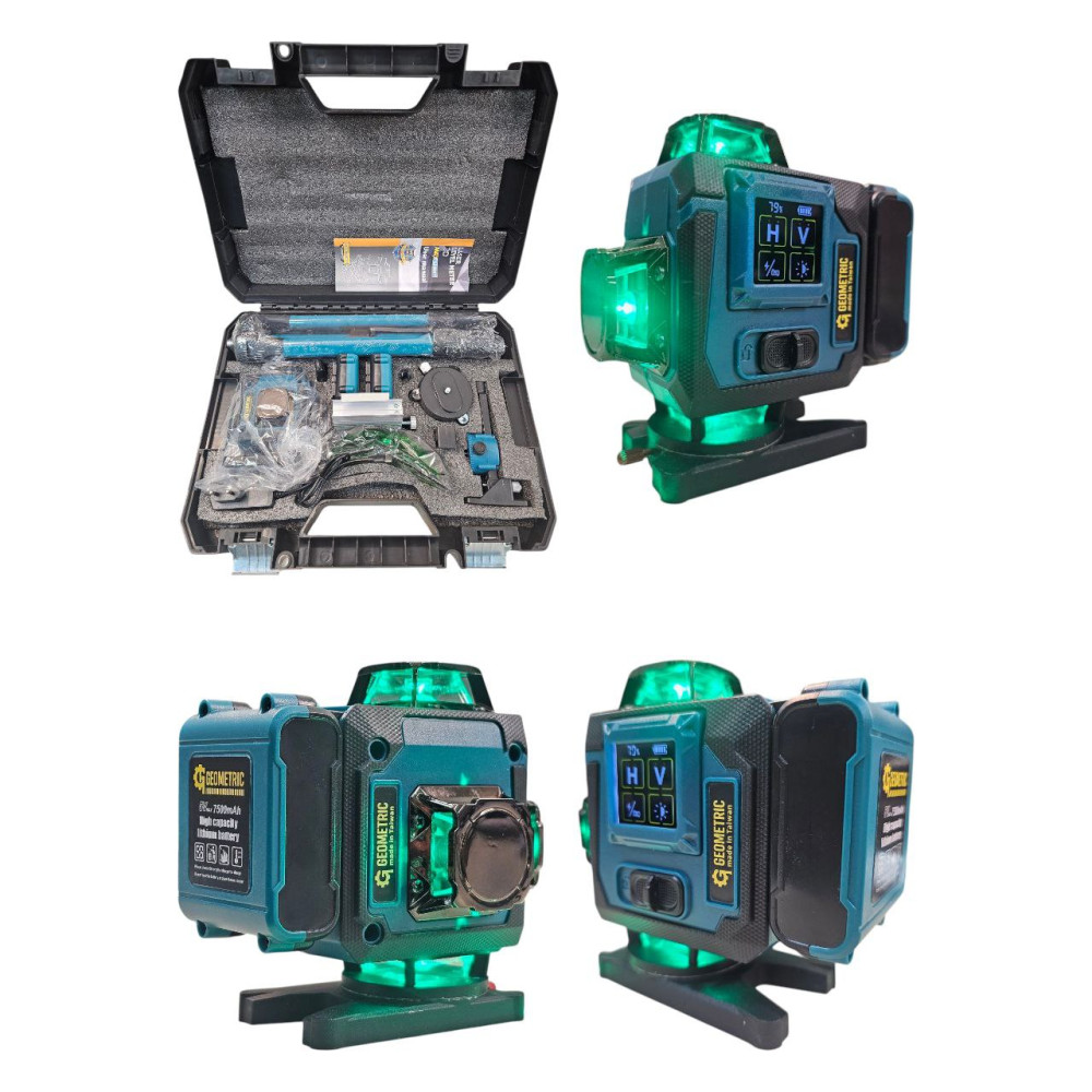 Geometric HC-7500 4-D Blue — висококласний лазерний рівень, створений для майстрів, будівельників, монтажників та дизайнерів, яким потрібна максимальна точність та надійність. Завдяки сучасним технологіям, потужним лазерним модулям Osram та покращеній конструкції баштових модулів, цей прилад забезпечує надзвичайно тонкі, яскраві та чіткі лінії у будь-яких умовах освітлення.