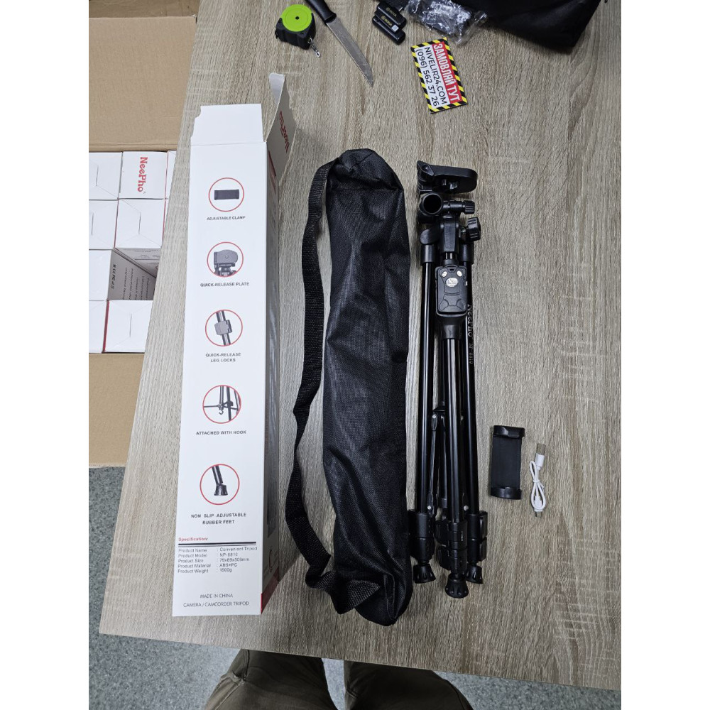 - Міцна та легка конструкція – виготовлений з алюмінієвого сплаву, що робить штатив легким, міцним і зручним для транспортування.