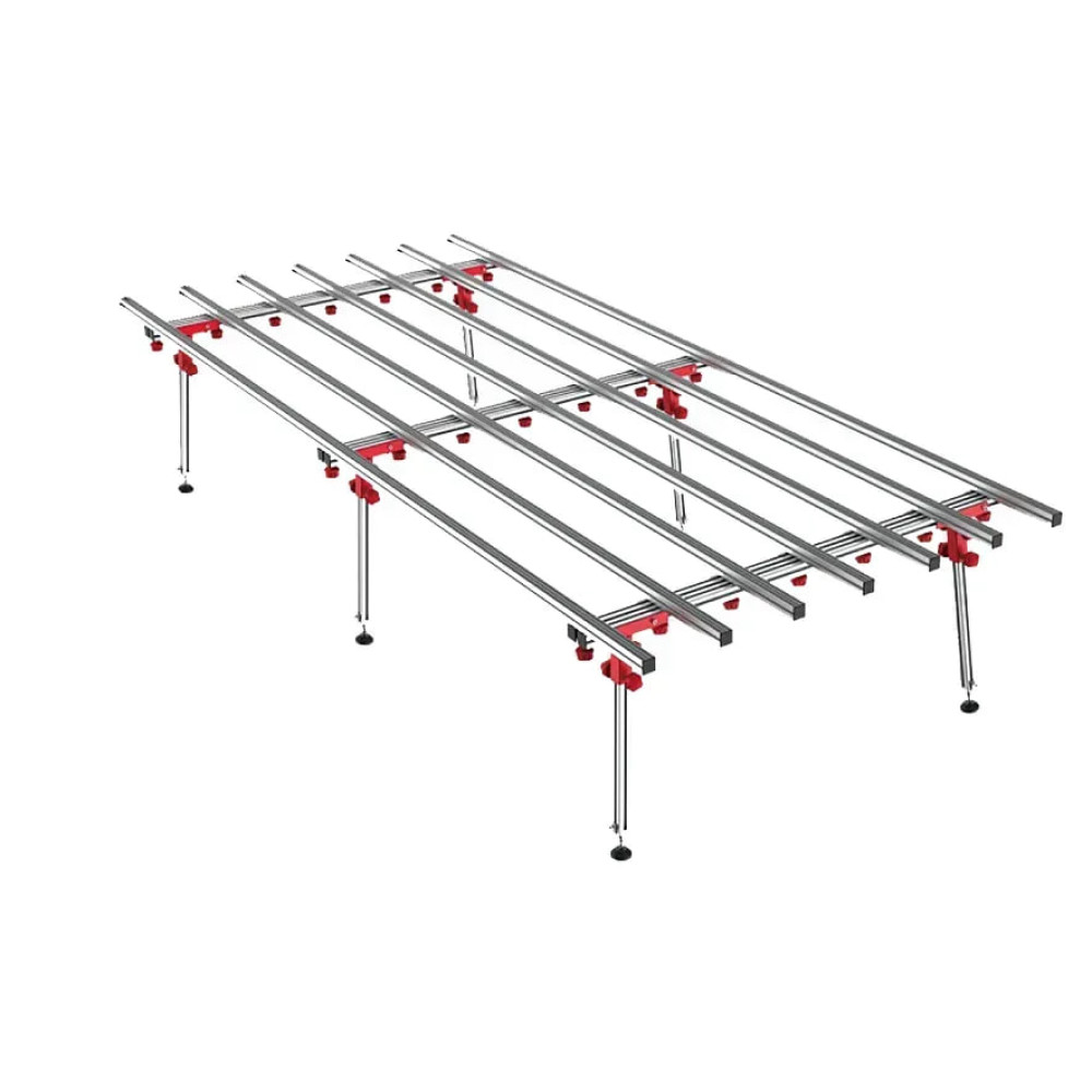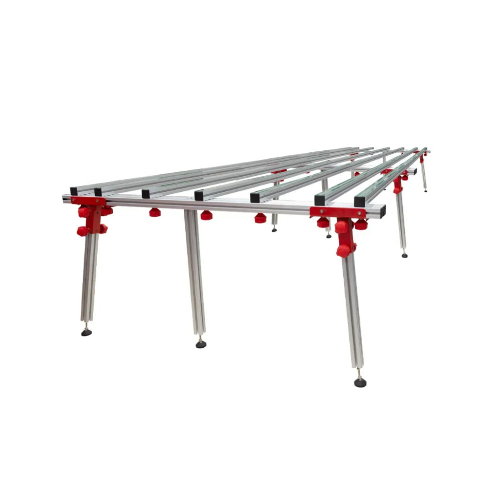 - Гнучка регулювання розміру: основний стіл має довжину 1800 мм, а з приставкою може бути розширений до 3600 мм. 9 опорних ніжок, що забезпечують максимальну стабільність навіть під великою навантаженням.