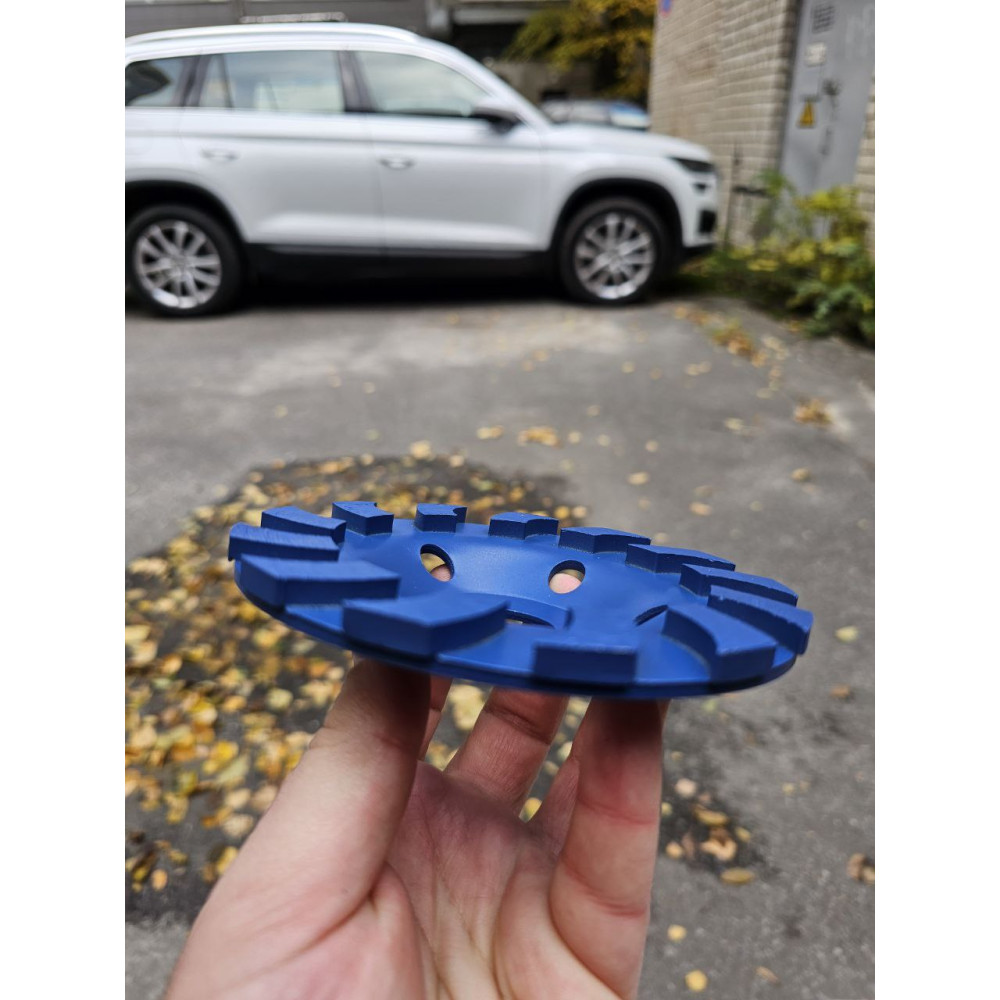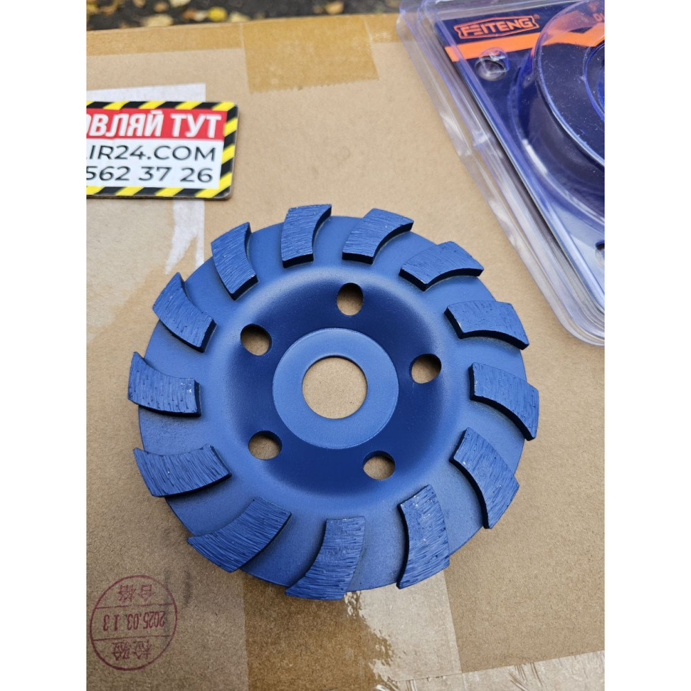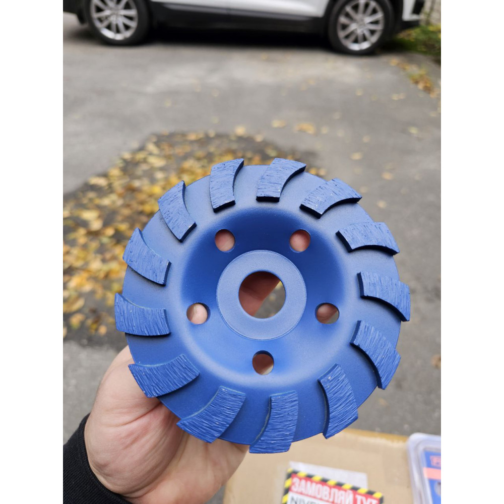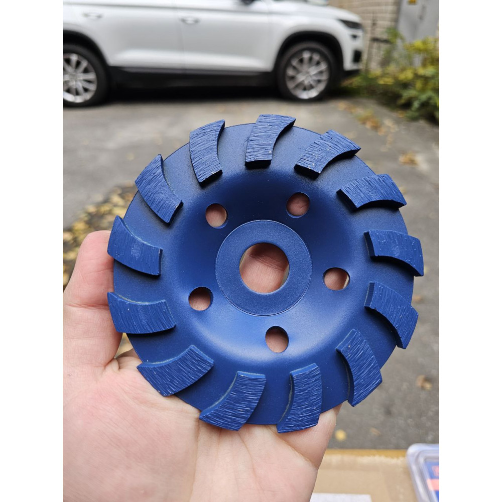 Алмазна чаша для шліфування 125 мм (Турбохвиля) призначена для ефективної обробки бетону, цегли, цементних стяжок, штукатурки, а також природного каменю та граніту. Завдяки турбохвильовій формі чашка забезпечує швидке, плавне та комфортне шліфування, дозволяючи отримати рівну та гладку поверхню без ривків і перевантаження інструмента. Оптимальна геометрія робочої частини сприяє рівномірному зняттю матеріалу та стабільній роботі. Чаша виготовлена з міцного металевого сплаву дрібної фракції методом пресування під високим тиском, що гарантує довговічність і надійність у процесі експлуатації.