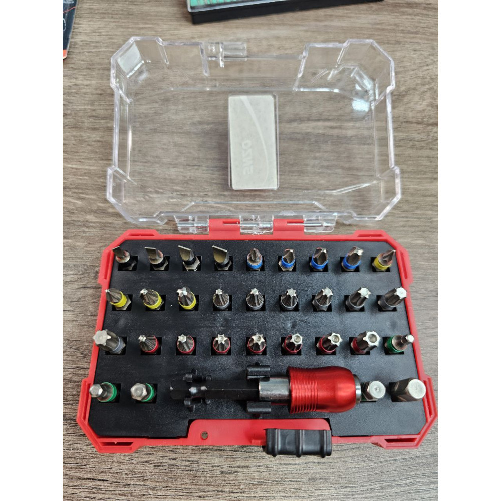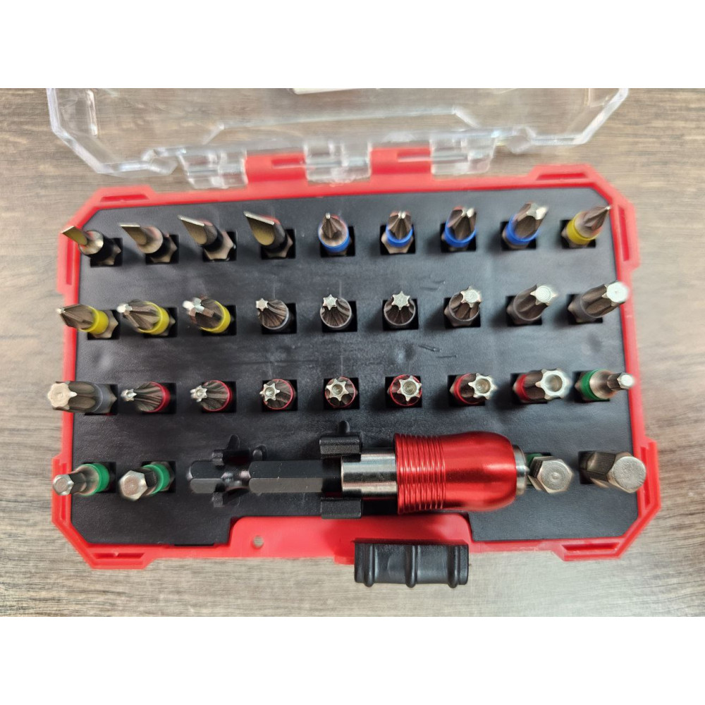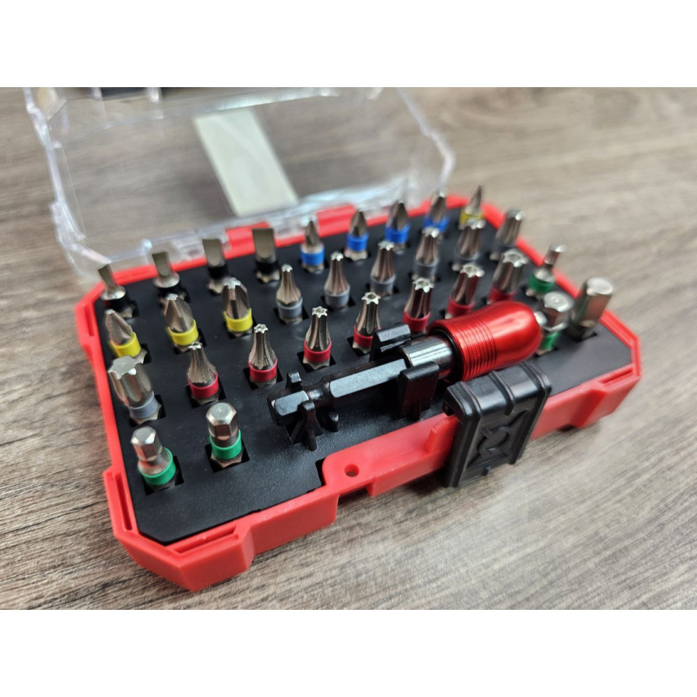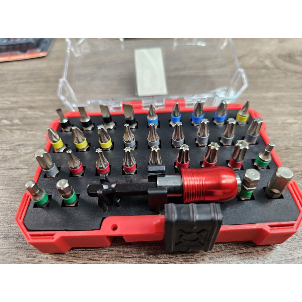 • Широкий набір із 32 предметів — включає біти типів SL, PH, PZ, TORX, TT, HEX;